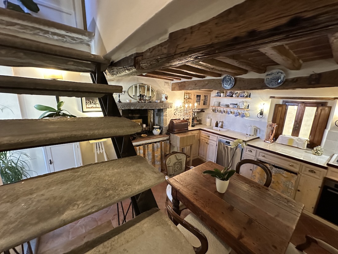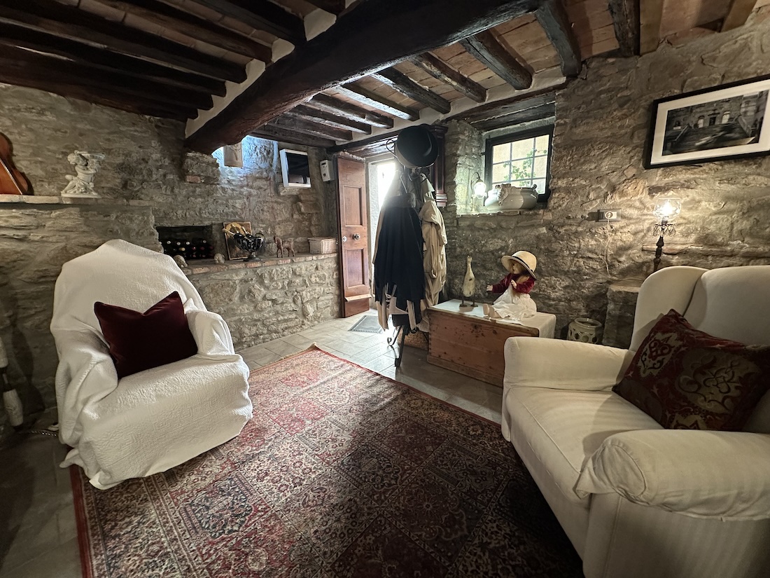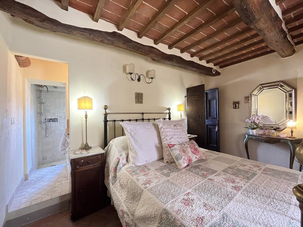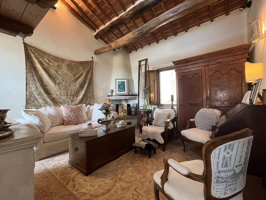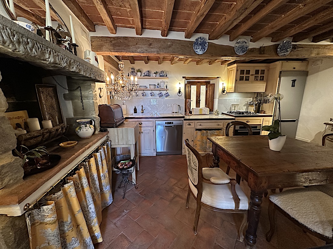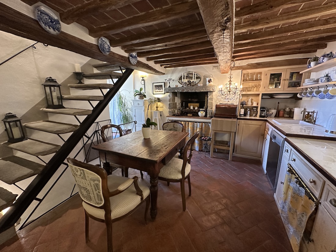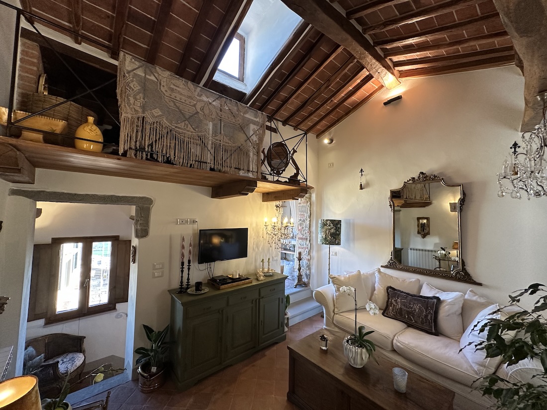 Beautifully restored while preserving its original Tuscan character, the residence unfolds across four levels with warm, light-filled interiors, exposed beams, and traditional stone fireplaces. The highlight of the home is its private garden terrace overlooking the rolling landscapes of Valdichiana, with views stretching toward Lake Trasimeno and Mount Amiata—an idyllic setting for sunset dining and relaxed outdoor living.