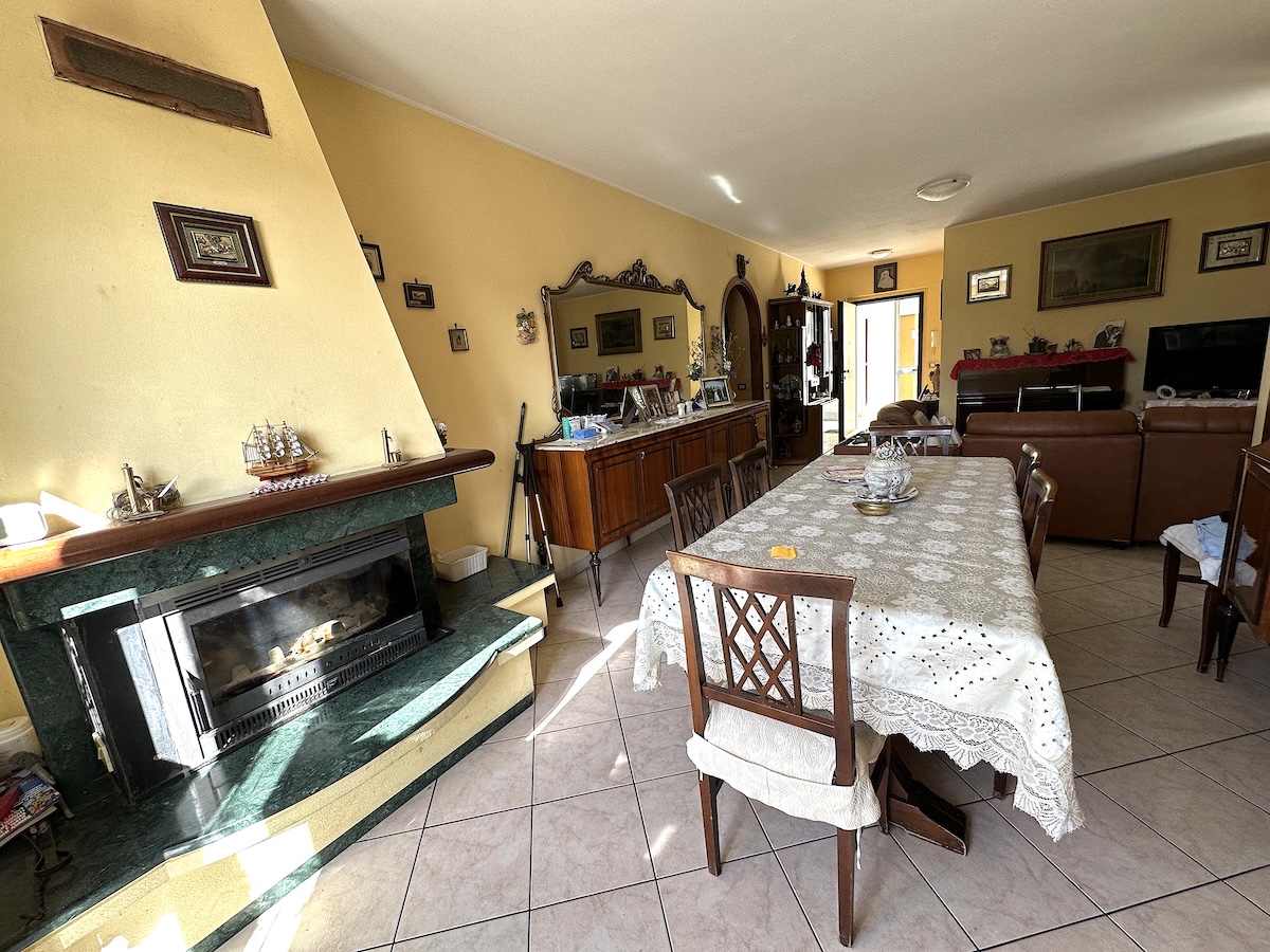 Located on the ground floor, the property features seven well-distributed rooms, including three bedrooms, a bright double living room, and a large eat-in kitchen, perfect for those who enjoy cooking and spending convivial moments with family and friends.